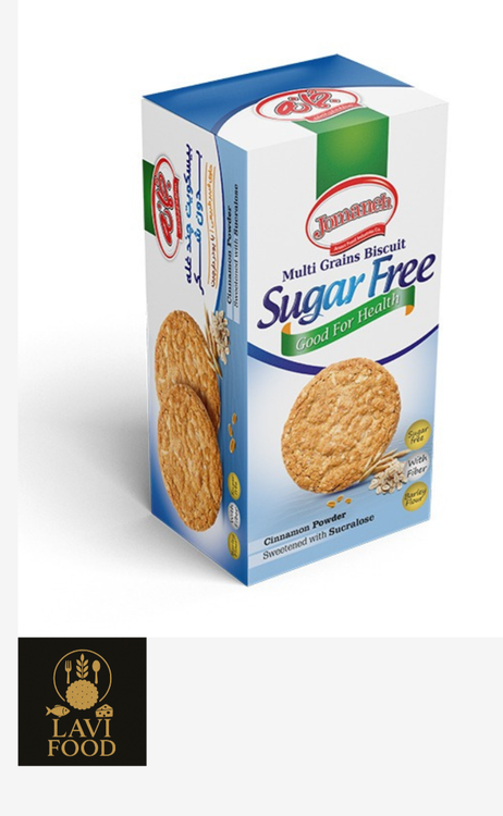 بیسکویت چندغله بدون شکر جمانه شیرین شده با سوکرالوز میان وعده ای کامل رژیمی مناسب برای افراد دیابتی و افرادی که به سلامتی خود اهمیت می دهند این محصول دارای پودر دارچین می باشد ارزش غذایی ذکر شده برای هر 3 عدد بیسکویت یک سهم معادل 42 گرم ذکر شده است.
