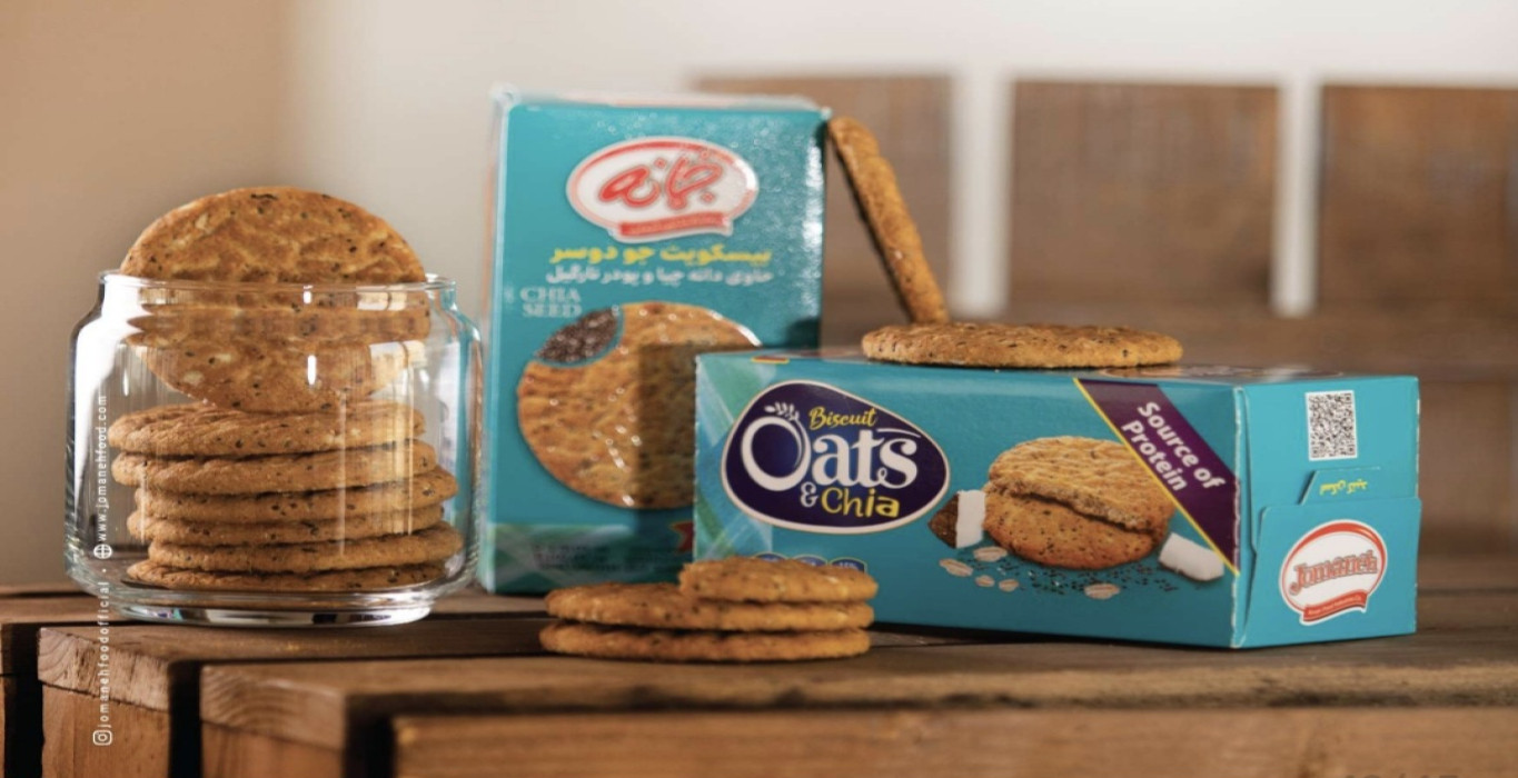 بیسکویت جو دوسر حاوی دانه چیا و پودر نارگیل ۱۶۵گرم کارتن ۳۰عددی جمانه۱٬۲۰۰٬۰۰۰ 20%